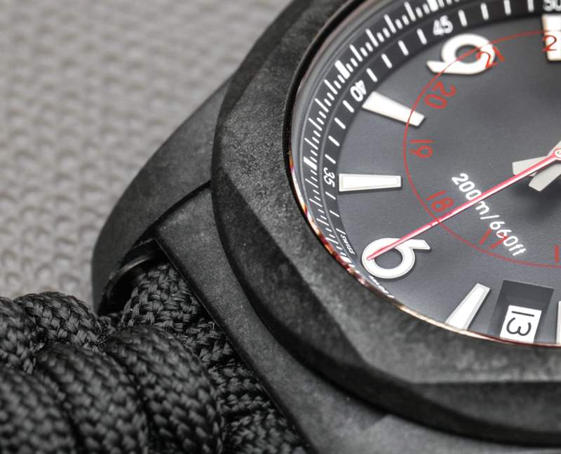 不是每個(gè)人都喜歡碳纖維外殼的外觀。它有一種未完成的工業(yè)外觀,根據(jù)您的口味和觀點(diǎn),它會(huì)很酷或太原始。我不知道我是否想一直佩戴碳表殼,但作為運(yùn)動(dòng)表,我認(rèn)為它很酷。它在今天也可以說(shuō)是相當(dāng)時(shí)尚,而且材料本身講述了一個(gè)很好的故事,我認(rèn)為很多人都會(huì)欣賞。