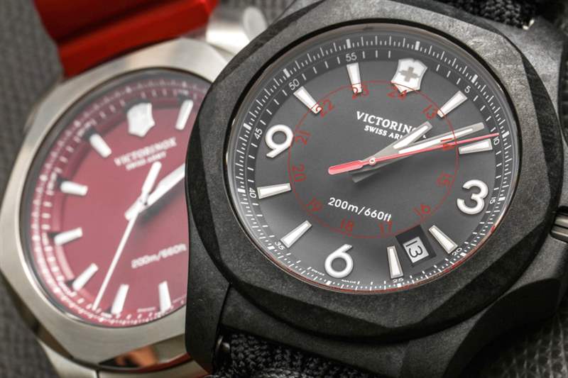 Victorinox Swiss Army INOX Carbon 推出首款黑色 INOX 表殼,并為該品牌使用了輕質(zhì)材料。我很確定 Victorinox Swiss Army INOX Carbon 的開(kāi)發(fā)始于該品牌希望擁有一款黑色版本的手表。他們決定像其他品牌(尤其是高端品牌)一樣流行,并使用高科技碳材料,而不是簡(jiǎn)單地做一個(gè)涂層金屬外殼。
