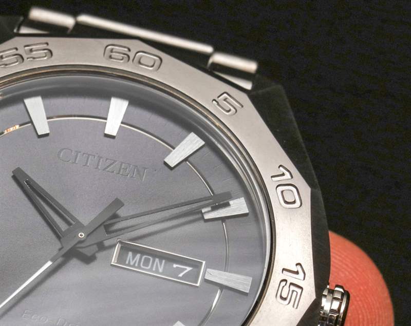 我很確定西鐵城會希望在不久的將來繼續重新審視這一系列 Eco-Drive Super Titanium 手表,并且可能會推出更多型號——但當然,對此沒有任何承諾或保證。在設計方面,我喜歡帶有 12 面幾何表圈的棱角分明的表殼。表圈上是分鐘指示器,它們與超級鈦金屬表殼的整體“銳利”設計相得益彰。廣告訊息廣告信息結束