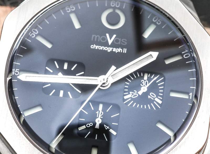 MoVas Military Chronograph II 手表中我最喜歡的部分可能是表盤設計。MoVas 搭配沛納海風格的“lume-sandwich”表盤,但對這種表盤的外觀有自己的看法。手的長度都合適,易讀性非常好。Lume 相當不錯,但我認為考慮到表盤的風格,這可能會更好。我想說,如果 MoVas 有什么我最喜歡的,那就是 Sean 的表盤設計。有趣的案例乍一看很熟悉,但也是原創的。