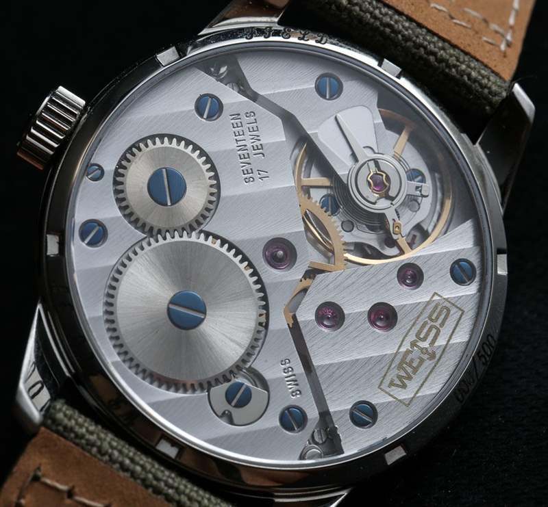 UNITAS 本質(zhì)上是一種相當(dāng)古老的機(jī)制,但堅固耐用——如果有的話,它是一種主力。出于這個原因,即使最初設(shè)計為懷表機(jī)芯,ETA 仍然生產(chǎn)它們。它以 2.5 赫茲(18,000 次/小時)的頻率運(yùn)行,并具有 46 小時的動力儲存。手動上鏈,它提供帶有輔助秒盤的時間。我想不出更好的機(jī)芯來放置復(fù)古野外風(fēng)格工具手表。Weiss 將該機(jī)芯稱為 Calibre 1001。
