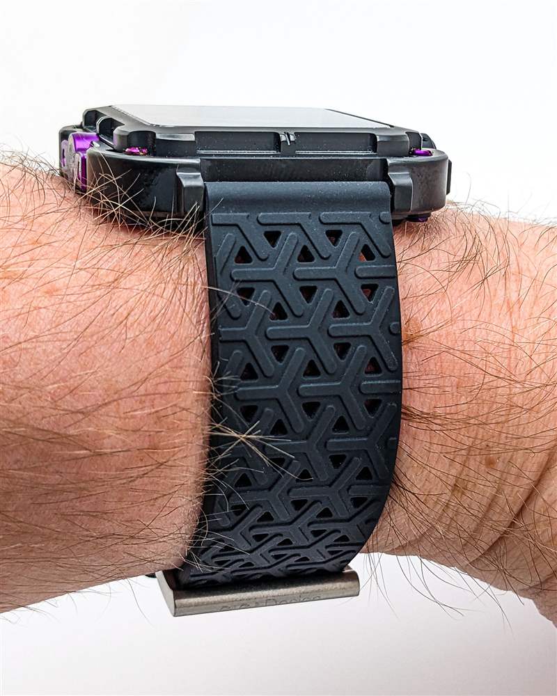CIGA Design 為 Series X Gorilla 提供一對(duì)表帶選項(xiàng)。其中最引人注目的是定制的黑色橡膠穿孔表帶。這款柔軟、靈活的表帶采用重復(fù)凸起的三點(diǎn)圖案,與表殼和表盤(pán)的未來(lái)感相得益彰,同時(shí)也有助于使這款表帶舒適透氣。該品牌還包括一條黑色織物表帶,使用起來(lái)更加堅(jiān)固。兩條表帶均采用裸露的不銹鋼硬件,與表殼形成輕微對(duì)比。