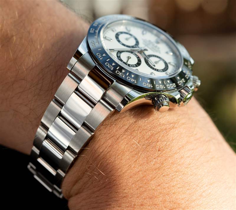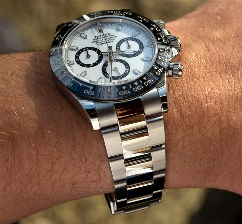 好吧,有一些警告是堅不可摧的,正如我們將在下面看到的那樣。盡管如此,這是真的:即使我把這塊手表交給了不懂手表的人,也能看出它的制造方式不同。這不僅僅是任何一個元素——904L 鋼,手鐲鏈節的緊密和一致的配合,感覺它做了更多的壓縮和熱循環的表殼(唯一感覺可比的表殼是百年靈的一些表殼) ,它也會經歷更多的循環,從而產生更重、更密集的感覺)。相反,它是所有這些努力的結晶,使代托納比大多數其他豪華計時碼表明顯更堅固。鑒于其各種明亮拋光表面和獲得的深光澤之間的高度一致性,