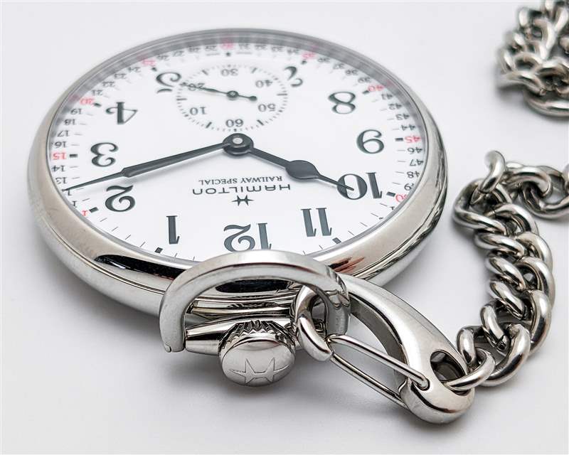 Hamilton 為鐵路懷表配備 ETA 6497-1 手動(dòng)上鏈機(jī)芯。自 60 年代推出以來,6497-1 一直是懷表和腕表生產(chǎn)的中流砥柱,憑借其老派的 18,000 bph 節(jié)拍率,它在實(shí)踐中捕捉了早期鐵路手表的精神。該機(jī)芯還提供穩(wěn)定的 50 小時(shí)動(dòng)力儲(chǔ)存,但奇怪的是(尤其是對(duì)于高精度鐵路計(jì)時(shí)應(yīng)用)不會(huì)出現(xiàn)故障。然而,在我們的測(cè)試期間,6497-1 在精度方面表現(xiàn)出色,平均每天僅 +4 秒。Hamilton 為這款鐵路懷表配上相配的不銹鋼鏈條。雖然簽名的登山扣式端夾在這里可能有點(diǎn)過時(shí),但鏈條堅(jiān)固且易于固定到皮帶環(huán)、夾克口袋、廣告留言廣告信息結(jié)束