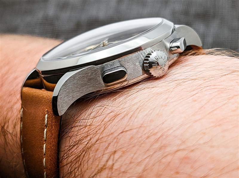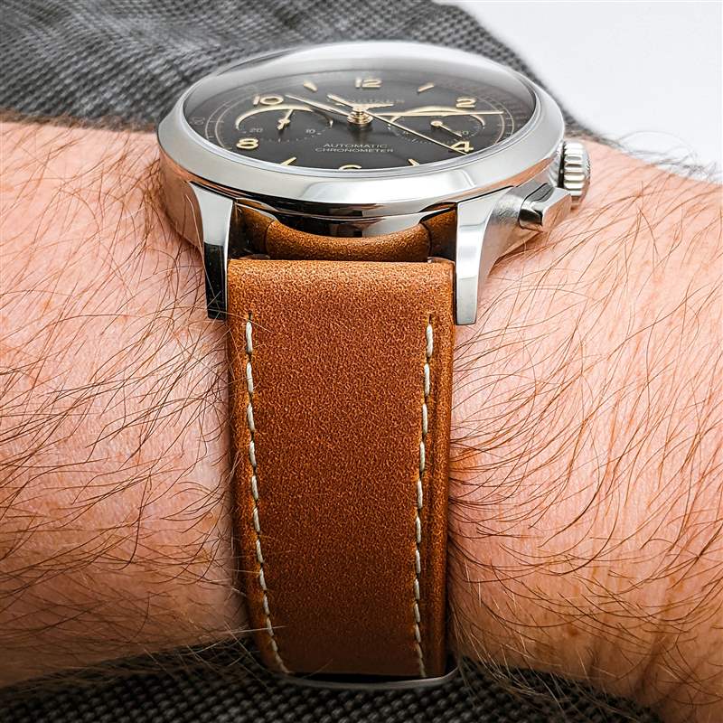 浪琴 (Longines) 將 Record Heritage 與兩種表帶搭配。第一個是復雜的多鏈節不銹鋼表鏈,但我們的評測樣品是在馬鞍棕色皮革表帶上送達的。從表面上看,這是一款經典且用途廣泛的選擇,具有均勻的啞光質地和干凈的灰白色對比色縫線。在實踐中,雖然它的外觀簡單且用途廣泛,但表帶顯然很硬,可能需要長時間的磨合才能完全貼合手腕而不會感到不適和擠壓。也就是說,浪琴表 Record Heritage 簡潔、經典的整體外觀應該可以搭配各種表帶,打造更加定制的感覺。廣告留言廣告信息結束