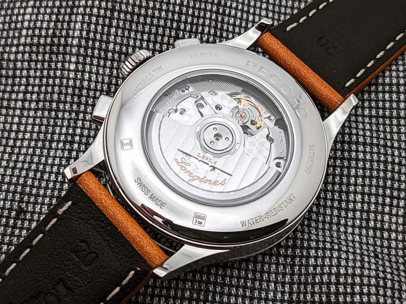 浪琴表以獨家 L895.4 自動計時碼表機芯為 Record Heritage 提供動力。盡管 L895.4 機芯最終基于 ETA 2892-A2 平臺,但 L895.4 是 ETA 憑借其 Swatch Group 關系僅為浪琴表生產的新修改版本。L895.4 的表面處理與同價位的其他產品相比毫不遜色,橋板和擺輪夾板上的波紋清晰、緊密,還有帶有日內瓦波紋的漂亮簽名鏤空擺陀。此外,L895.4 是一款真正的 COSC 認證天文臺表,在我們的評測期間,該表在這一嚴格標準內以平均每天 +5 秒的速度運行。令人印象深刻的 59 小時動力儲存以 28,800 bph 的節拍率完成包裝。