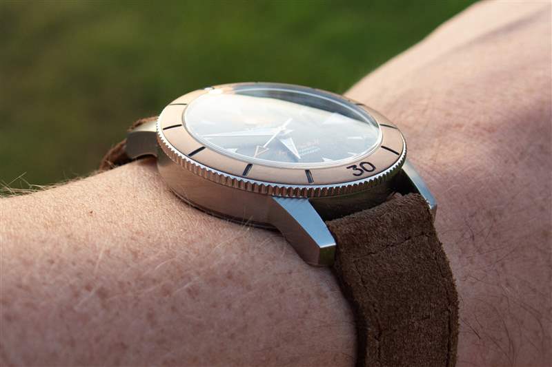 雖然我對許多超級海狼(超級海狼?)產(chǎn)生了短暫的興趣,但這也許是第一個真正引起我共鳴的。我會非常主觀地說它是迄今為止最好的超級海狼。最終,這款手表與標準黑色表盤版本之間的唯一區(qū)別是青銅表圈、青銅表冠和絨面革表帶(加上表背上的小樹)。